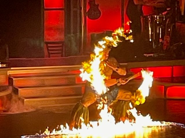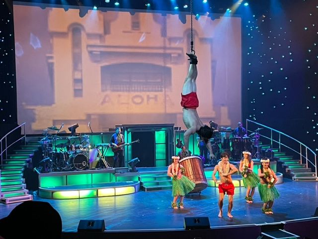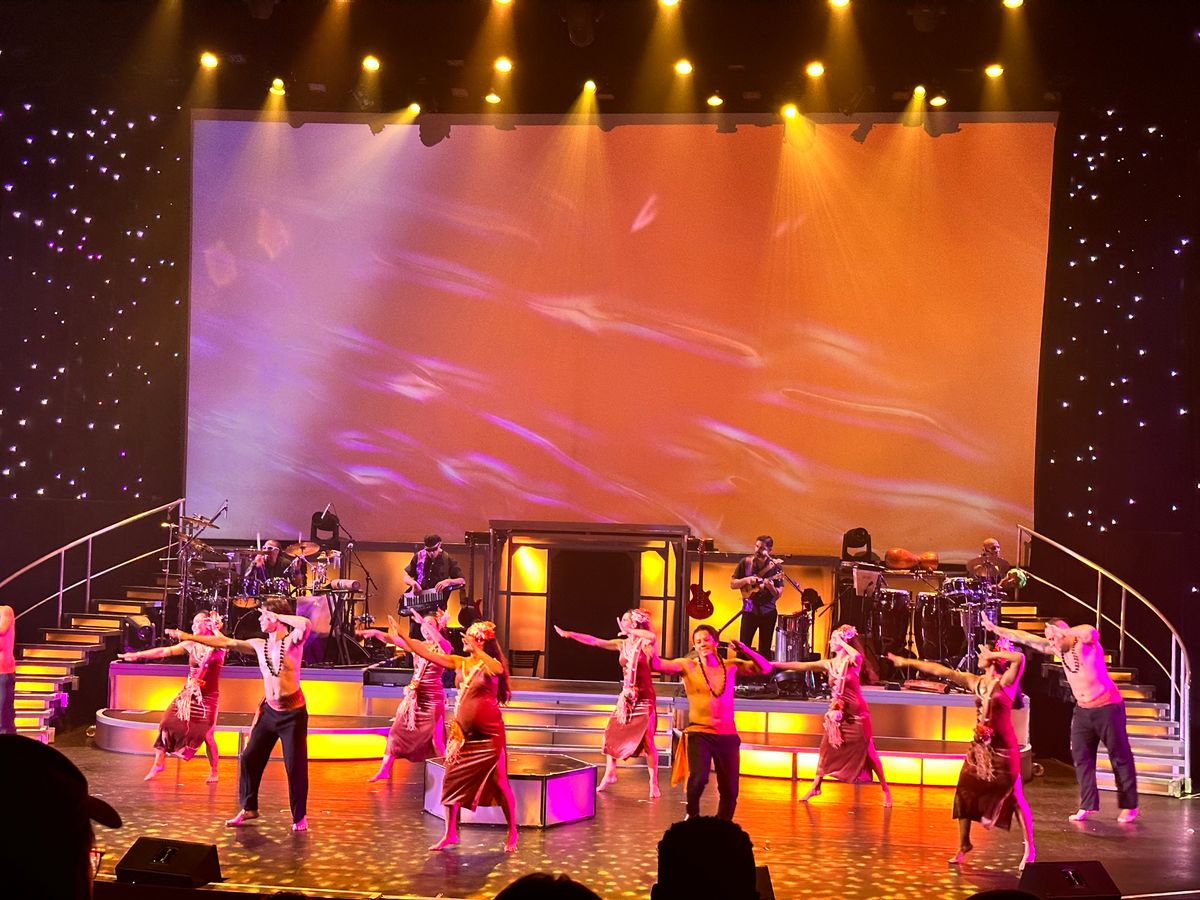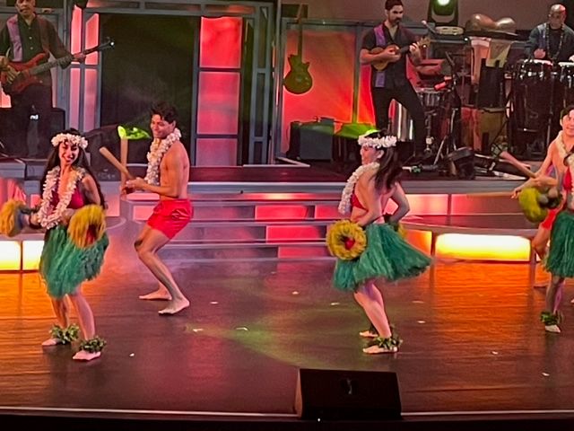 ロックンロールやハワイアンミュージック、フラダンスなど、様々なジャンルが織り交ぜられたエンターテインメントでした!特に印象に残ったのは、私もよく知っているマイケル・ジャクソンのショーでした。生演奏のバンドと共にマイケルの名曲が演奏され、その後にはマイケル本人のダンス映像とのコラボレーションもあり、会場全員ノリノリになっていました。