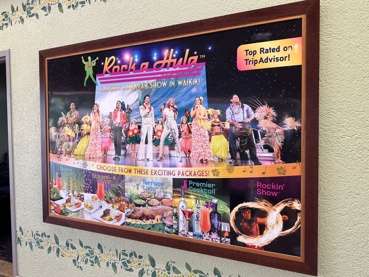 久しぶりに、ロック・ア・フラショーを観る事が出来ました。(多分、3回目?)エルビス・プレスリー、マイケル・ジャクソン、知らない人(笑)のそっくりさん達と、フラショーを交えたレベルの高いショーが楽しめます。ただ、マイケル・ジャクソンさん、少しお疲れだったのでしょうか?あのキレッ!キレ!さが少し欠けていたように感じました。それでも、当時の事を思い出し、とても感動し、楽しい時間を過ごす事ができました。開催場所も、ロイヤル・ハワイアン・ショッピングセンター内にあり、高齢な方でも気軽にアクセスしやすい場所なので、お勧めします。