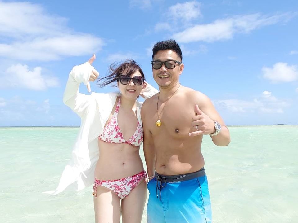 The sandbar was unfortunately not very sandbar-like due to the tides, but my daughter was really happy to see a sea turtle up close. It was an experience that is hard to come by in Japan. Also, the spam musubi made by the staff was delicious.