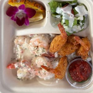 At the Dole Plantation, we had pineapple soft serve, which was quite a large portion, so sharing between two people is recommended. After about 20 minutes, we arrived at Haleiwa, where we had two hours of free time and received a recommended map, making it easy to explore! We enjoyed both the pineapple burger and garlic shrimp recommended by our driver before heading back. It was a very fun time!