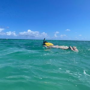 They also told us the best spots for snorkeling, and we quickly jumped into the water. We borrowed life jackets, so even though it was windy, we were able to float and see underwater. I was surprised to see so many different kinds of fish swimming in the shallow water—I didn't expect to see that much! It was cold, so we got out quickly, but I want to try again on a hot day.