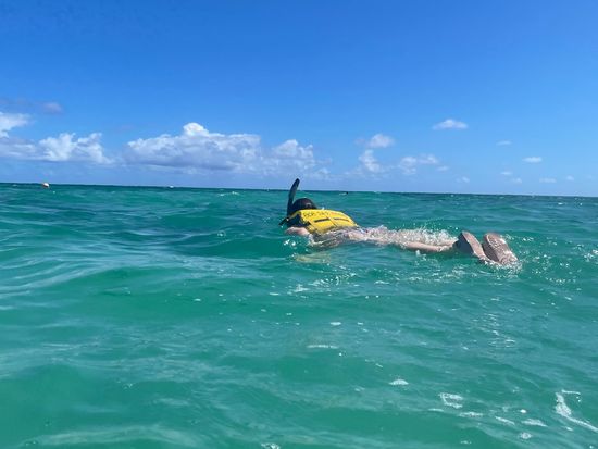 ライフジャケットも借りたので、風が強かったですが、ぷかぷか浮きながら海中を見ることができました。