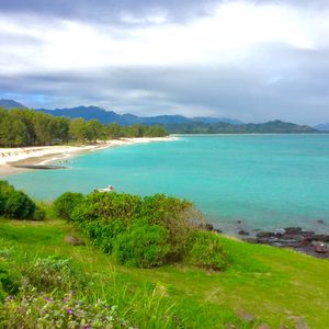 When we arrived at the beach, it was cloudy, but it cleared up quickly! The ocean was very beautiful! My husband was visiting Kailua for the first time and was very happy, snorkeling by himself the whole time! He said he saw colorful fish!