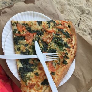 私たちはランチはピザをチョイス。ピザ屋の定員さんも感じよかったです。ドリンク付きでした。おすすめのほうれん草とガーリックのピザは大当たりでした。サイズも顔2つ分はあるくらいのビックサイズで大満足。あっという間の時間でした。