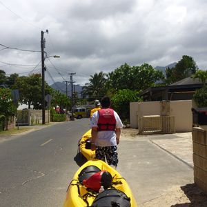 Transporting the sea kayak to the ocean might be a bit challenging... It feels tough with just two girls. It might be better to go with guys.