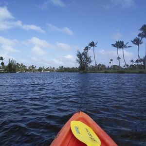 参加した日は年に数日しかない強風高波の日でした。シーカヤックに変更可能と言われたので迷わずお願いしました。それでも海での運行はコーチ付きの参加者も苦戦していたのでリバーカヤックを選択したのが大正解!川沿いには高級別荘が建ち並んでおりカイルアの暮らしを垣間見ることができました。