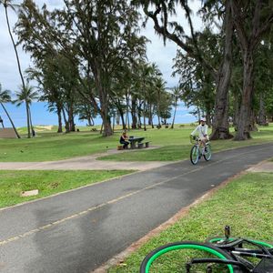 We participated as a couple with a Japanese guide. We had free time in the first half, and then we went kayaking at noon. We decided to try cycling, which we hadn't planned for. The bike had a brake that stops when you pedal backward, and I was quite nervous getting used to it. However, I was amazed by the beauty of Lanikai Beach and the lovely cycling path along Kailua Beach! I'm glad we did it ^_^