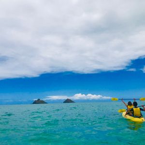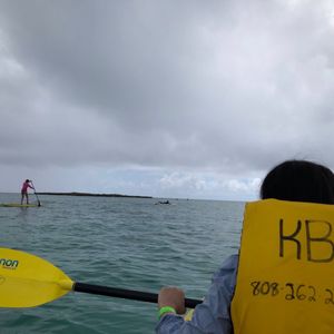 I participated in a kayak tour with a Japanese guide at Kailua Beach with my sister. We were picked up from our hotel at 7:35 AM and arrived at the shop near Kailua Beach around 9 AM. After receiving an explanation about the kayaks, we carried the kayaks ourselves to a nearby beach and paddled towards a deserted island. Once we reached the island, the guide took us around while explaining about it. They also took a lot of photos for us. On the day I participated, the weather wasn't great, with rain showers coming and going, but it felt adventurous and I enjoyed it. The kayaking time is about an hour, so it might be a bit short for experienced paddlers. However, I recommend this tour for beginners. The staff was cheerful, and the shop's facilities were well-equipped, allowing us to have a safe and enjoyable time.