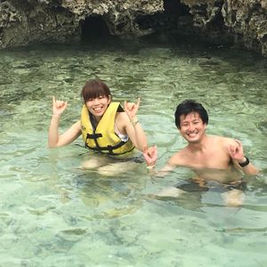 The kayaking in the second half was stunning because the sea was so beautiful, and I was in awe. However, I was so focused on paddling that I couldn't take many photos. After we reached the uninhabited island, we had the guide take various pictures for us, but I was really disappointed that we didn't get a photo of the two of us in the kayak. It ended with me wondering, "Huh? Huh?" The kayaking felt great while we were on it, but we capsized when getting in and out, which turned out to be surprisingly fun (^ ^)w