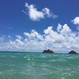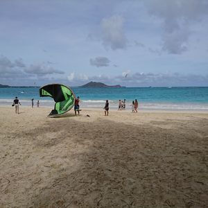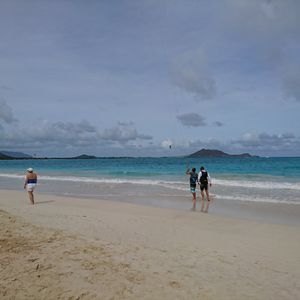 First, we arrived at Kailua Beach Center, listened to the instructions, and then loaded the boards onto a cart to head to the beach. It's a bit of a distance. We started around 10 AM and paddled to a nearby island. Since it was Kailua, I was worried about strong winds, but on that day, it was about 5 to 6 m/s, which I think is manageable for experienced paddlers. By the way, my wife fell down while kneeling about halfway through. We wanted to head into Kailua town in the afternoon, so we wrapped up at the beach early and returned to Kailua Beach Center by noon.