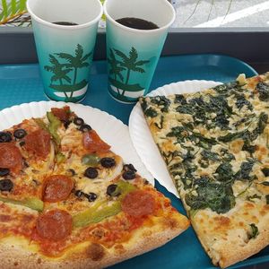 This beach is dog-friendly. You can see well-trained, smart dogs happily playing with their owners. My beloved dog also rode a bodyboard and surfed the waves. Bob's pizza is really delicious! It's even better to take it to go and eat it at the beach!