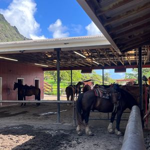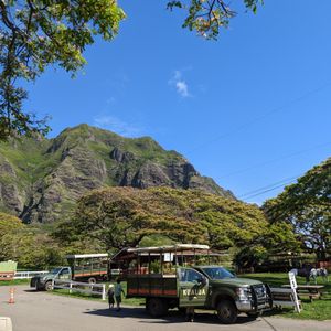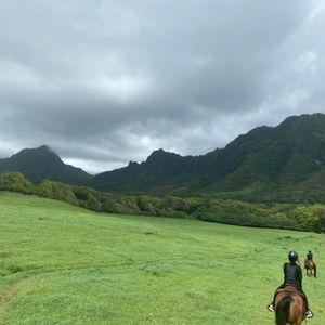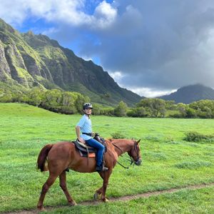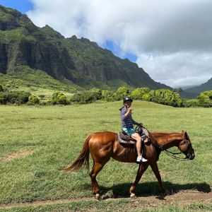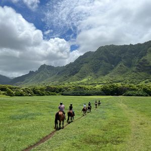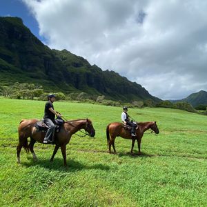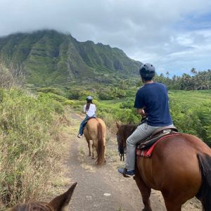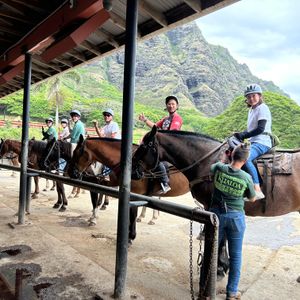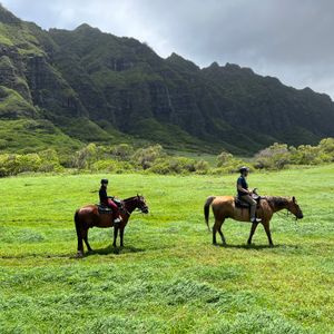 It was a fun tour to ride horses for two hours and walk through the magnificent nature of Kualoa. The shuttle bus to Kualoa Ranch was clean, making the journey very comfortable. If I had to mention something, the café was crowded that day, and while waiting in line for lunch, I almost ran out of time, so I thought it would have been better to bring a snack. If you're concerned about sunburn, it might be good to have a cover-up. Also, if the helmet strap smells, I think it's better to find a way to adjust how you wear it.