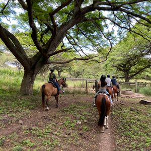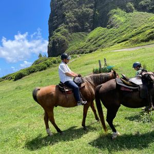 The tour was a small group of four people, my wife and I along with another Japanese couple, and our guide. It was my first experience riding a horse, and at first, I was scared and anxious until I got used to it. But after about 30 minutes, it became fun, and the horse was so well-behaved that I felt safe riding! The magnificent views of Kualoa and the ocean were breathtaking, and the breeze was pleasant. I highly recommend it over a bus tour!!! The only downside was that, since there were only Japanese people, there was no announcement about this area being a filming location for Jurassic Park... I wish there had been some explanation in English...