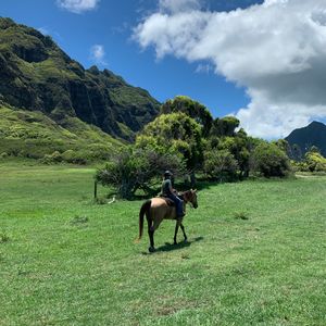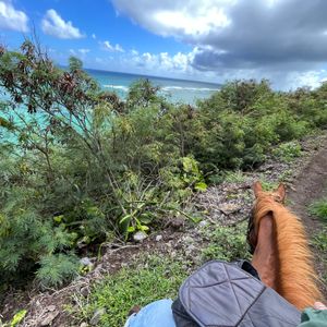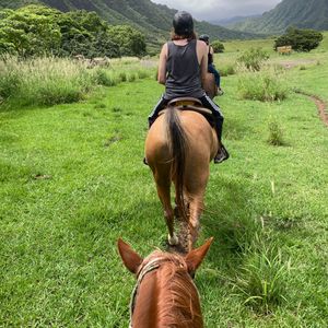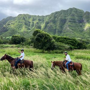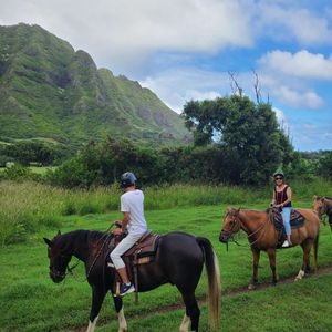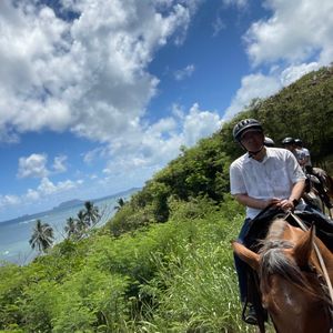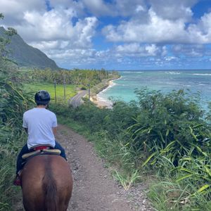 I was anxious about riding a horse suddenly, but the horse was smart, and I was able to ride comfortably. The magnificent Kualoa Ranch and the beautiful ocean were just amazing.