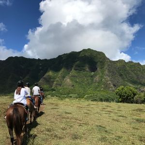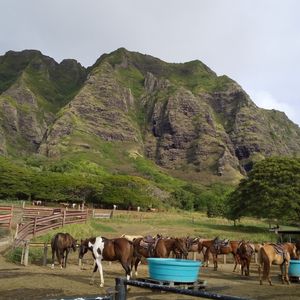 ハワイには10数回行きましたがクアロアランチには初めて行きました。2時間の乗馬は長いかなと思いましたが、ジュラシックワールドの撮影地などを見て回るには2時間は必要かなと思い予約しました。私の馬はとても素直で大人しく良い子でした。中には途中で道端の雑草などを食べ始めて止まってしまう馬がいました。(これが本当の「道草を食う」と分かりました。)クアロアランチの雄大さを体感し、ここであのジュラシックワールドやキングコングを撮影したんだと感動しました。さすがに2時間の乗馬は最後にお尻が痛かったです。