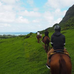 I had always wanted to go horseback riding in Hawaii, and after taking riding lessons in Japan, my dream finally came true. During a two-hour tour of locations from Jurassic Park, I enjoyed the beautiful scenery on horseback in great weather.
