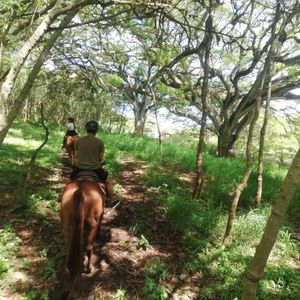 I participated in a two-hour course. Even though it had been a while since I rode a horse, the pre-ride lecture was quite simple: pull the reins to the right when you want to go right, and to the left when you want to go left. It also mentioned that if the horse starts eating grass, you should firmly pull the reins to stop it. I was a bit worried when I got on the horse, but it was very well-behaved and followed the horse in front of it perfectly. We went through a lush forest and then came across a path where we could see the ocean. There was also a place with several large dinosaur bones, which I assume was a filming location for Jurassic Park, making it quite enjoyable. I felt a bit nervous when other riders approached on the narrow path, wondering if we could pass each other, and we even encountered some buggies. The two hours flew by. However, I unexpectedly started to feel pain in my backside, but overall, it was a fun tour.