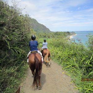 2時間コースに行ってきました。乗馬しながら、クアロアの自然を満喫。ジェラシックパーク撮影場所や峡谷内の散策、海が馬上から見れます。あっという間でしたが、お尻が痛かった。