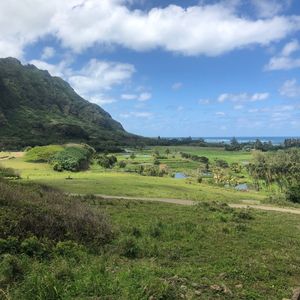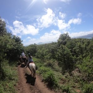 The horseback riding experience allowed us to spend a very slow time. My wife also enjoyed her first horseback riding experience. The scenery was wonderful with the ocean and mountains, but the fact that it was a filming location for Jurassic Park was a bit underwhelming as a selling point. The weather was bad, but we were prepared for rain, which was helpful (I was almost about to buy a windbreaker). However, the lack of enthusiasm from the staff who accompanied us was disappointing... Even though the horseback riding started at 11:00, we were picked up at 6:50 and had nothing to do for two hours, which was frustrating. After the horseback riding, we had to wait an hour for the shuttle, and since the location is Kualoa, it might be far, but I wish there was a way to improve that. If that could be resolved, it would be perfect.