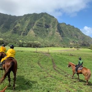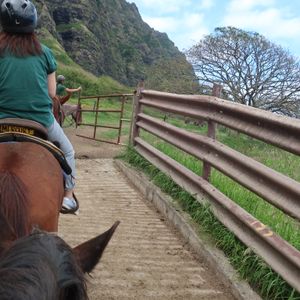 This was my second visit to Kualoa Ranch. I was worried because the pick-up from the Sheraton was about 30 minutes late, but the horseback riding experience went as scheduled. Riding while looking at the mountain range and the ocean was amazing. The instructor pointed out that my saddle was tilted and needed adjustment, but I couldn't get it right until the end, which may have put a burden on the horse.