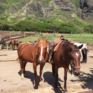 My husband and I and our 2 kids age 10 and 12 set out from k'Olina area to the ranch. I have to say the drive was amazing. Great views, beach pull off spots, food trucks and we also stopped off at a coffee farm on the way. Once at Gunstock Ranch the staff was super friendly and accommodating. The horses were incredibly trained and easy to ride. The horses were very very very calm and I would trust my 91 year old grandmother could ride them and be just fine. The place was very clean and the horses very well kept after. Hardly any bugs at all, although we did put bug spray on us before hand just incase. I saw beautiful butterflies during the ride on beautiful lush natural trees and bushes. Seriously the views looked like movie sets and later we learned filming was done there in the past. The ride was easy, smooth and very very enjoyable. The scenery was incredible. We rode so close to cows big ones and baby ones. They were very calm and I was happy to know the cattle ranch does not brand their cattle but tag them with numbers. The people at this ranch really do take care of the horses. It's extremely apparent the amazing caring hands these horses are in. You do not need any prior experience at all to do this excursion and I highly highly recommend them over any other ranch in the area. We have done family trail rides before but this one was the best! When we return to Oahu we will be back.