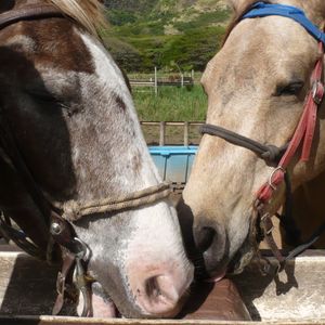皆さんの評価を見て、まだ初心者で40鞍ほどレッスンを終えたばかりの私が参加しても迷惑かなあ、と思いつつ、しかしハワイの平原を馬で駆けてみたい誘惑に勝てず、恐る恐る申し込みました。結果はチャレンジして正解、とても楽しい時間を過ごすことが出来ました。普段はリング内でしか駆け足しないので、トレイルでの駆け足は初めてだし、ウェスタンの鞍や、片手で手綱を操作する方式も初めてでしたが、ガイドのエミリーさんが親切に教えてくれ、イングリッシュ乗馬よりも手綱を緩めるというコツを教わってからは、馬のLibbyちゃんが調子良く走り始めて、軽快なトロットやカンターで丘を駆け上がり、頂上では海と空とオアフの大地が見渡せる素敵な景色が。上級者でなくても、駆け足が出来るようになったら、ぜひ挑戦してみて欲しいです。きっと更に乗馬の魅力が発見出来ますよ。