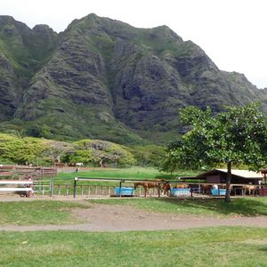 尚、牧場があるLaieは、ワイキキからレンタカーで1時間強かかるノースショアにあり、ポリネシアンカルチャーセンターの少し先。ワイキキの天気とは異なる場合があり、当初私が予約した日は、ワイキキは晴天だったが、現地は雨が降ったり止んだりで、トレイルがぬかるんで馬を走らせるのが危険とのことで直前に中止になり、途中で引き返すハメに遭い、たまたま空いてた翌日に予約し直して参加出来ました。ベルトラも現地催行会社も牧場も、とても親切な対応して頂いたので良かったですが、上級コース参加者はワイキキを出発する前に、牧場に直接電話して現地の天候をチェックし、ツアー催行の確認をお勧めします。初心者向けの歩きだけのコースは、多少の雨でも催行出来るそうです。
