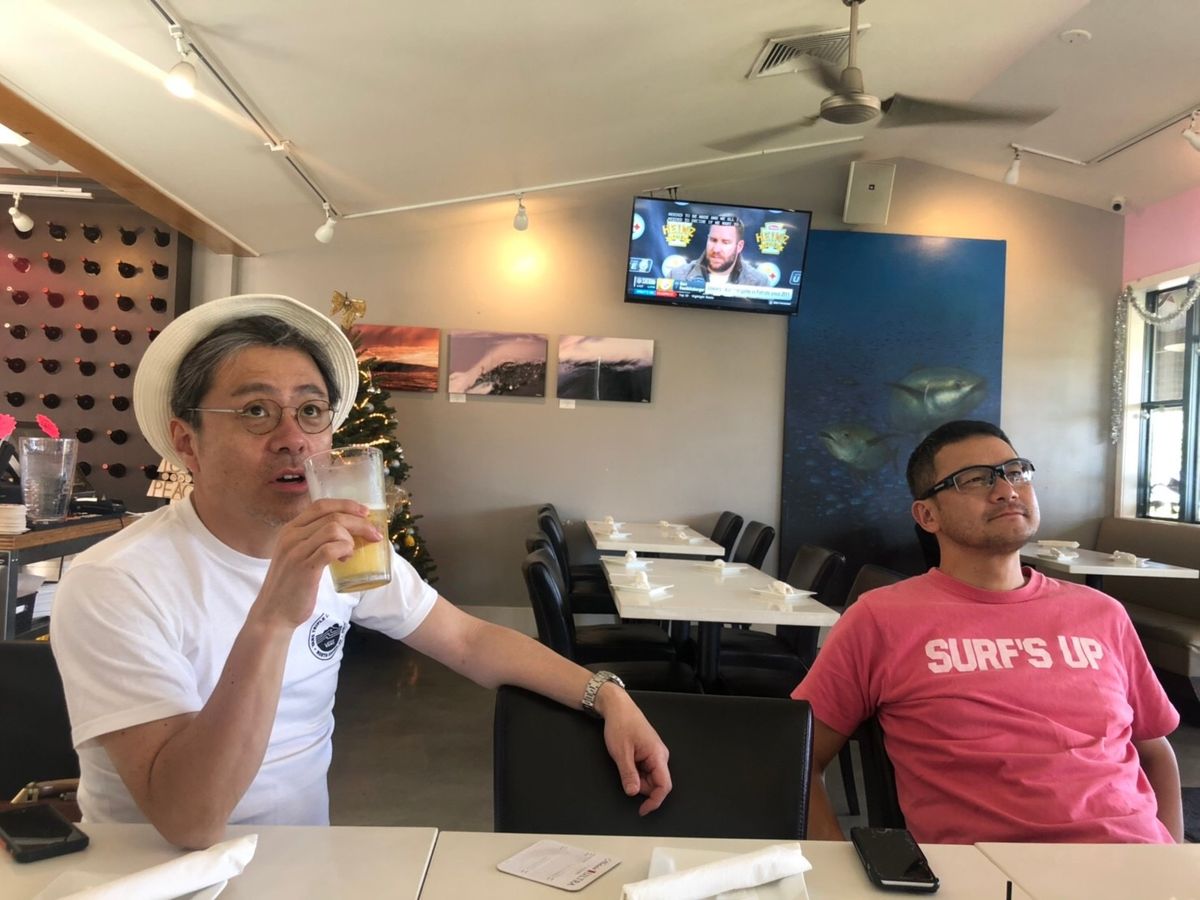Along the way, we had some time, so we stopped by a coffee farm, enjoyed complimentary coffee, and listened to stories about the mountains where Zero fighters flew during the Pearl Harbor attack, reflecting on the happiness after the war while gazing at the blue Hawaiian sky. After that, we enjoyed ice cream at the pineapple plantation and finally arrived at Haleiwa's Old Town on the North Shore. We soaked in the local atmosphere of Hawaii that we had always dreamed of. Kazu shared information about local food and the history of the shops, and we savored Hawaiian dishes of tuna and shrimp, leaving us satisfied.