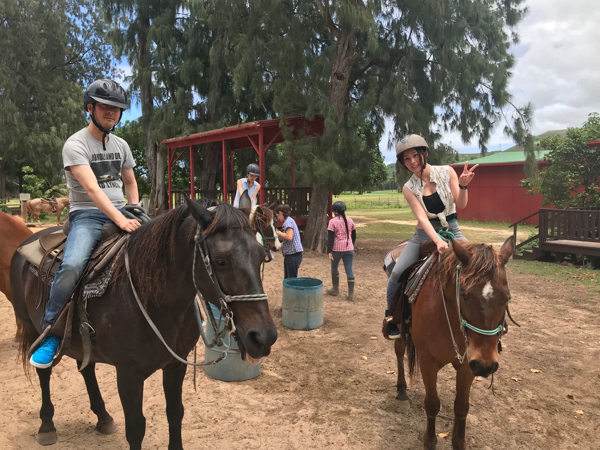 Although the weather was a bit bad, we were able to enjoy horseback riding and had a great day. I felt that the horseback riding was a bit more active and enjoyable than at Kualoa. My husband had his first horseback riding experience, and he seemed to really enjoy it, saying he wanted to ride again after we finished.