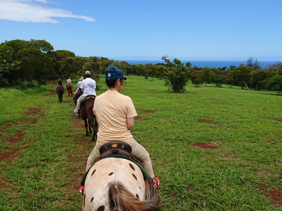 I participated in a horseback riding and North Shore sightseeing tour. Since I had previously joined a seaside course, this time I chose the valley course. Riding a horse along the hilly mountain paths was a lot of fun. Also, I was lucky to have the weekend-only huli huli chicken for lunch in Haleiwa. The driver was very pleasant and accommodating. If I have the chance, I would love to participate again. Thank you!