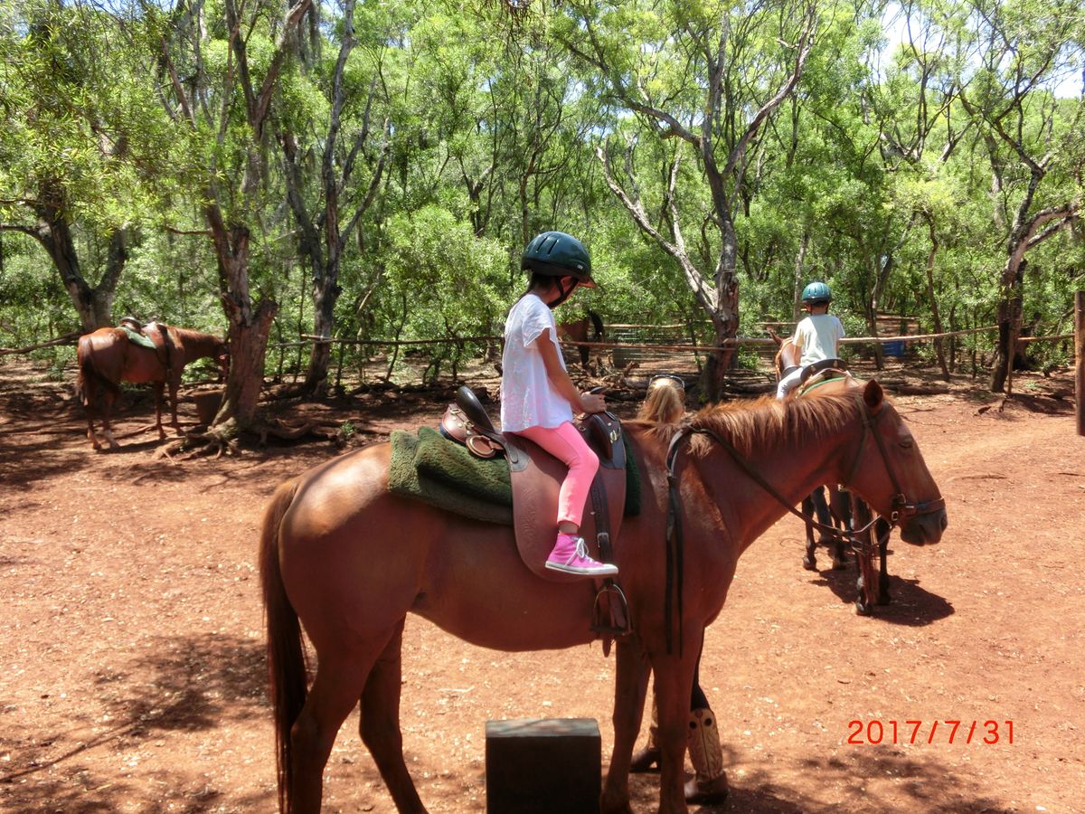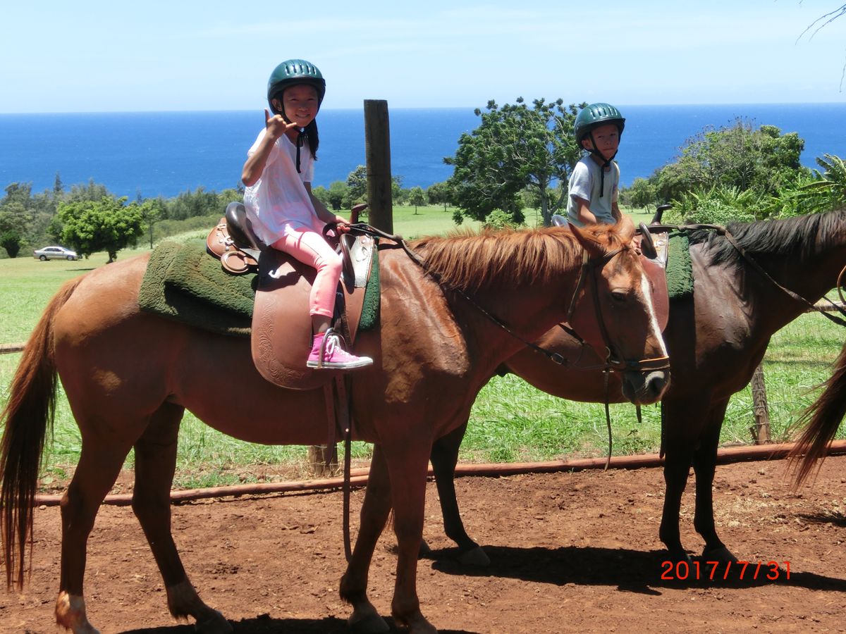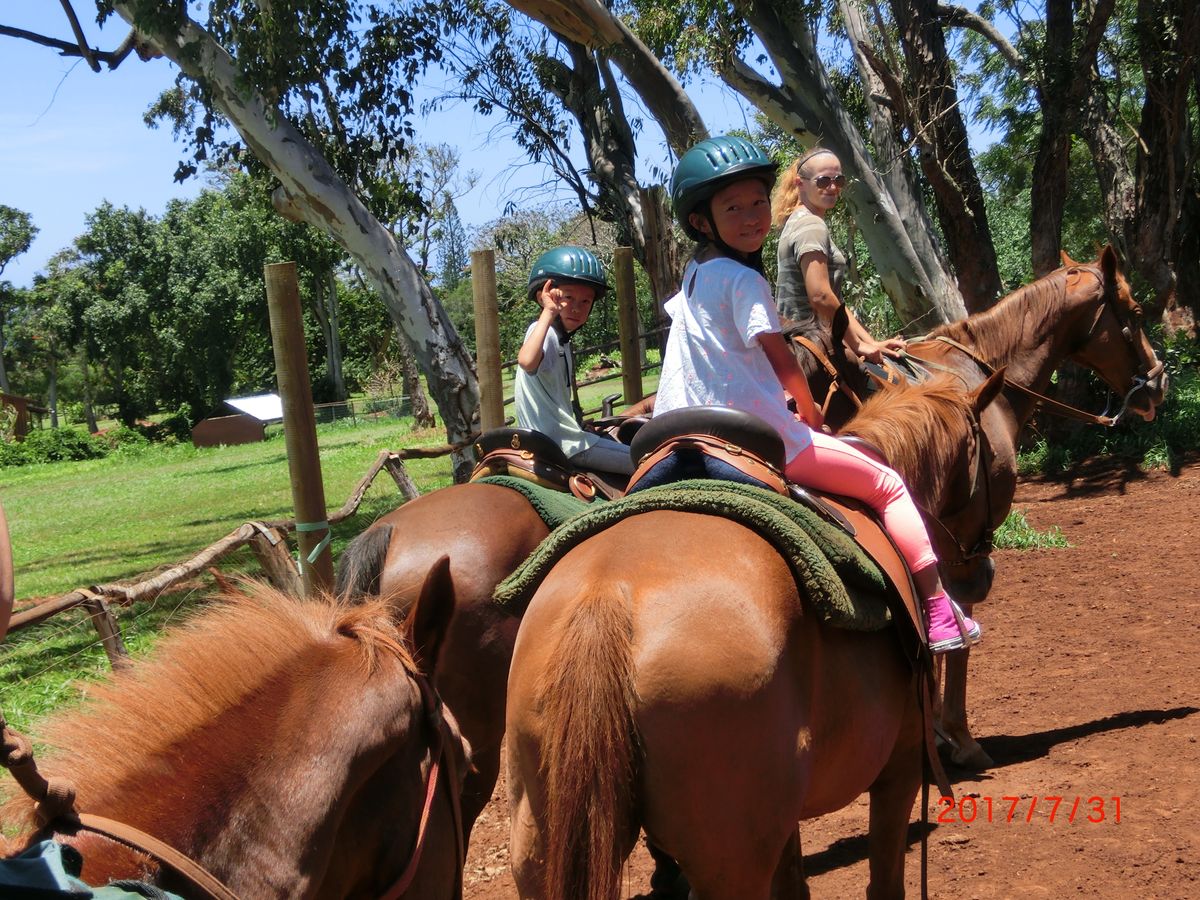 ハワイ旅行のメインイベント、毎回来るたびにルートが違ってとても面白いです、今回も、27日、乗馬したばかりなのにまったく飽きさせず、その都度新しい感動、発見があります、日本やハワイでも今まで違う乗馬体験をしましたが、今のところ、引き綱なしの解放感乗馬ができ、ここが一番、まだまだ、飽きずに、またハワイ旅行を計画した際は絶対このアクティビティは外さず日程に入れます、それだけ私たち家族を楽しませてくれています。