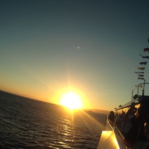 海から日が沈む夕景にかがやくワイキキを望みながら、サンセットに心を奪われました。食事は、一番下のランクでしたが、ローストビーフが食べ放題で絶品でした。ツアーバスが着く前に、直接乗り場へ行き一番に乗船、当然席は、早い順に案内されるので窓際をゲット!窓際以外はすべてが相席になります。でも4階のデッキからのサンセットは誰もが見られます。