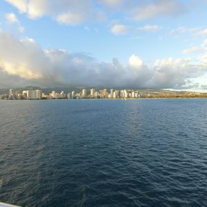 今回は残念ながら曇り空であった為、サンセットを眺めることはできませんでしたが、船から眺めるホノルルの景観に心洗われました。