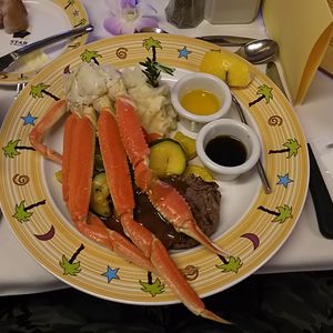 カニ食べ放題&ステーキプランを予約しました。一言でいうと楽しいクルーズでした。送迎をオプションで頼んでいたのでホテルからバスに乗るだけ。まだ明るいうちから船が動き出し、カニとステーキも食べ始め、そのうちにスタッフがバスケットにカニを入れてお代わりを持ってきてくれます。3~4本どしゃっとお皿に盛ってくれます。1階ではすぐに弾き語りが始まり、ポリネシアンショーに代わっていきます。そして、大体食べ終わるとポリネシアンショーもフィナーレに近づき、観客も一緒になって踊ります。