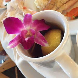 ハワイの夕日を眺めながら、ロブスターもステーキもいただけるとても豪華なディナーでした。デッキに出ると風がとても気持ちいい!少しフォーマルな雰囲気で、生演奏もあり、ロマンチックな雰囲気で旅行の最終日の夜を過ごすことができて満足です。ハネムーンの方には最適だと思いました!