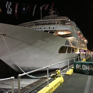 なんといっても、サンセット。ウェルカムドリンクから始まりショーを見て食事もおいしかった。3スターをチョイスしたのでバタバタしないでゆっくりと楽しめました。4組1テーブルで3組が日本人、韓国人の新婚さんと日本人の新婚さんとカップル、気兼ねなく会話も出来てストレスは皆無。特別に外側の席をオーダーする必要はないと思います。また、夜景も絶品、ロブスターとお肉もおいしくいただきました。ショーのつなぎに入っていた歌がいまいちかな。ハワイ旅行で1回はセットに入れたいのがディナークルーズだと思います。