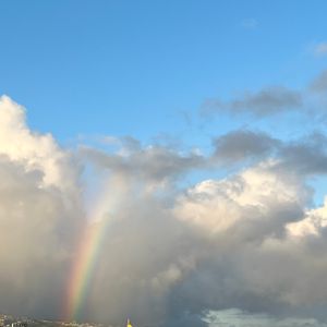 The weather had been unstable for several days, so I was worried about whether I would be able to see the sunset, but fortunately, the weather was great, and I was able to see a beautiful sunset! I also saw a rainbow four times.