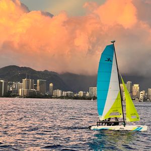 ハワイに到着した日の夕方にサンセットカタマランに参加しました。海へ出てすぐに、ダイヤモンドヘッドに虹がかかり、ワイキキの街と虹を海から見るという最高の祝福を受けました。サンセットも素晴らしく、海から見るワイキキは最高の思い出になりました。また参加したいと思うアクティビティです。