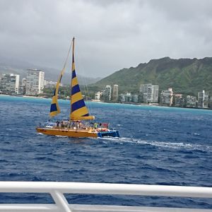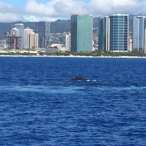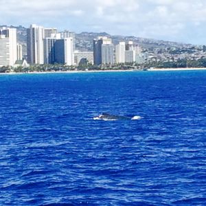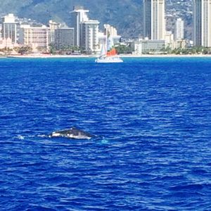 The weather was a bit unpredictable with rain coming and going, but the conditions on the day turned out to be quite good. The contrast of the rainbow with the planes taking off from Honolulu Airport and the view of Diamond Head and the streets of Waikiki from the sea was very uplifting. The open sea had surprisingly high waves, and everything from my clothes to my belongings got soaked, but the pleasant climate made it feel like being sprayed with water at Disneyland. Unfortunately, we didn't see any whales, but we received a pass to ride again for free within the season, so I felt quite satisfied. A couple in their 50s who could only speak basic English like "Thank you" somehow joined a tour that only had an English-speaking guide (there were about 20 participants, and only one other Japanese group besides us), but even without understanding the language, we had a pretty good time. Just keep in mind that there are no life jackets, so any activities outside the boat are at your own risk.