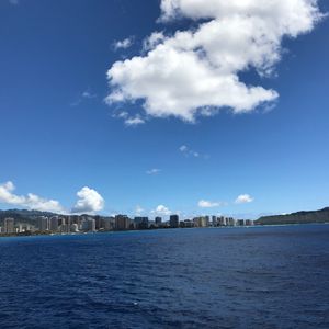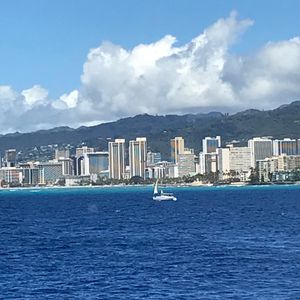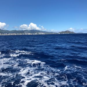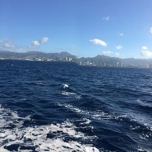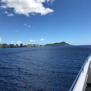 天気も良く、クジラが見えない間もホノルルの景色がとても美しくて飽きませんでしたが、結構波が高くて大きく揺れる事があったので、乗り物酔いしやすい方は薬必須だと思います。(私は平気なので、終始とても楽しかったです!)