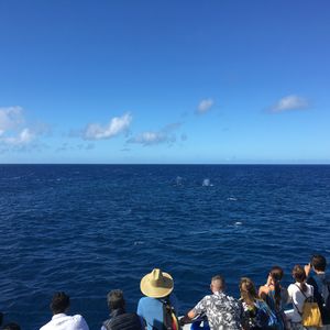 On February 9th, our family of seven participated. We chose the option with transportation, and the pickup was smooth. Upon arrival, we boarded the boat and immediately had breakfast, which included scrambled eggs, sausages, bread, watermelon, pineapple, and drinks of coffee and orange juice—please refer to the photos. After breakfast, we enjoyed about an hour and a half of cruising. The weather was great that day, and we had a wonderful view of the streets of Hawaii and Diamond Head. As for the whales, we saw them very well. At first, there was one, and later on, two came to visit us, and we could see their tails clearly. I believe everyone who participated that day had the best smiles. I read in other reviews that some people experienced seasickness, but since it’s nature, I think it can’t be helped. We were lucky to have a calm sea cruise under clear skies, so we didn’t get seasick. This event was suggested by my wife, and I truly think it was a great decision to go. Thank you very much to all the staff for providing us with such a wonderful experience and memories of our trip.