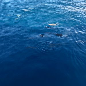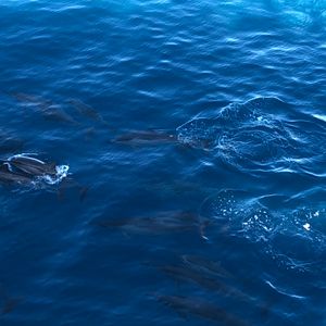 We went a bit further but still didn't see any more whales, so we turned around to head back. On the way there and back, we saw a pod of dolphins swimming close enough to capture on camera. However, I was a bit disappointed that I didn't see more whales. I wondered if the larger, famous boat we passed had gone further or if the afternoon tour would have been better. I can't say for sure if my choice was the right one.