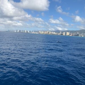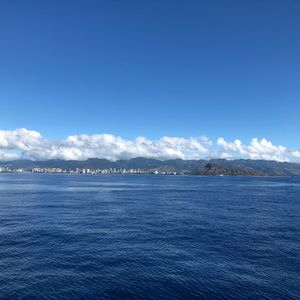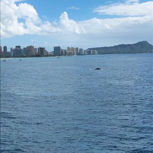 過去の体験談を見ていたら、くじらを見れないことも多いのかなと少し心配しならがら参加しました。実際途中まで全く気配を感じることもできませんでしたが、最後の最後に2頭のくじらの潮吹き(呼吸)や尾びれを見ることができました。うれしかったです。また海上から見るオアフ島はとてもきれいで素敵な写真を撮ることができました。くじらの写真もとりあえず撮ることができましたが、やはり距離があるので迫力ある写真がほしければ、望遠タイプのカメラを準備するか船の専属カメラマンの写真を購入するのが良さそうです。