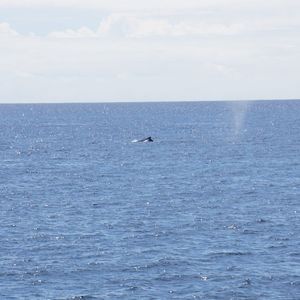 はじめはなかなか現れず、もしかしたらはずれの日かなぁって思っていたら、外国人グループの歓声とその方角を見ると潮吹きと尾びれが!!