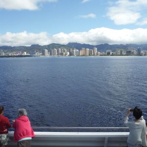 帰りはずっとデッキに出ていたので、海からダイアモンドヘッドやワイキキの街を見られて良い思い出になりました。