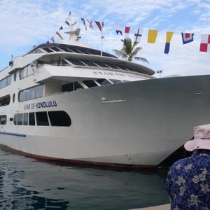 We boarded on February 27th. We encountered many whales just off the coast of Honolulu. While having lunch, we went out on the deck to watch, and on board, there were activities like a handmade lei class, hula dance class, and live Hawaiian music, making for a very enjoyable experience.