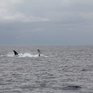 遠くに小さく、しっぽや潮吹きが見られました。3~4回は見られたので一応満足ですが、もっと近くだったら良かったのにと思いました。