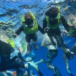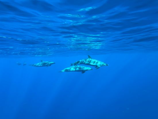 As soon as we headed out to sea, we spotted a whale! (Is it seasonal?), and within about 10 minutes of searching for dolphins, we found some! We dove in twice to get ahead of them. The excitement of having dolphins swimming close by was incredible, and the beauty of the ocean was even more breathtaking!