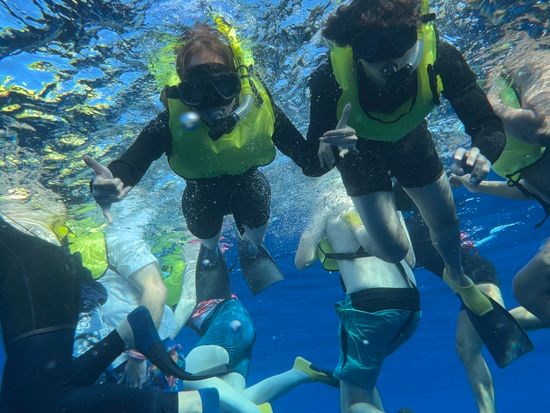 Steff accurately read the dolphins' movements and gave us dive instructions. Ryuichi drove the shuttle bus, provided precise interpretation on the boat, and supported the children with life vests during the dives, which was a great help. The lovely staff member Brooke swam at the front, took photos, and quickly shared the footage via AirDrop. It became a wonderful memory!