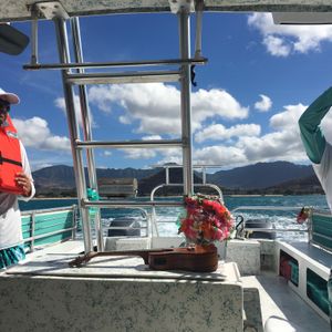 This was a great trip to go on. The check-in went smooth and the staff were friendly. The ocean was rough but the boat was so stable that I did not even get sea sick. While we were not able to go snorkeling because of this, we saw a whale and lots of dolphins! The morning sunshine made for a beautiful backdrop to the Waianae coastline. Ocean Joy is environmentally friendly to the dolphins and we normally would get to snorkel- just not with the dolphins since it disturbs them.